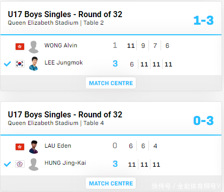 亚青赛截至后,香港站青少赛接棒举行,中国台北小将洪敬启的推崇很是出色,他在男单第一轮轮空。男单1/16决赛,洪敬启以3-0赢得开门红,三局比分为:11-6、11-6、11-4。